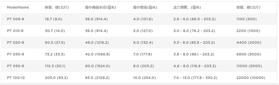 5:1的設(shè)計因素,使PT系列既可用于手動或動力提升機。符合美國相關(guān)標(biāo)準(zhǔn)(ASME/ANSI和CMAA)、加拿大和歐洲標(biāo)準(zhǔn)。
