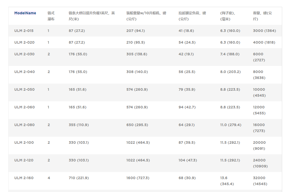 1/4-25噸的起重能力;Ingersoll Rand公司的ULM 2和ULM2S的設計是為了提供我們盡可能低的高度空間,最大限度地提高高度限制區域的提升能力。